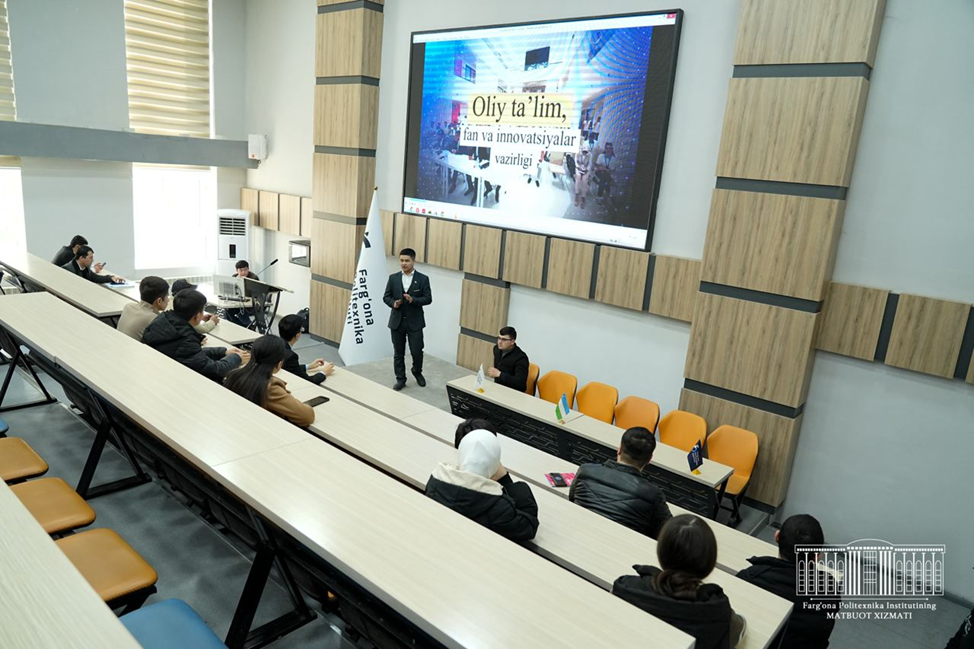 The meeting was also attended by A. Homidov, the head of the department for working with gifted students of the institute, I. Boltaboyev, the general manager for startups of the IT Park Fergana branch, J. Abduvaliyev, the winner of the contest in 2022, the leader of the Fergana youth academy, and a student of our university. K. Nishonov was invited to motivate the students. Young people received full answers to all their questions.